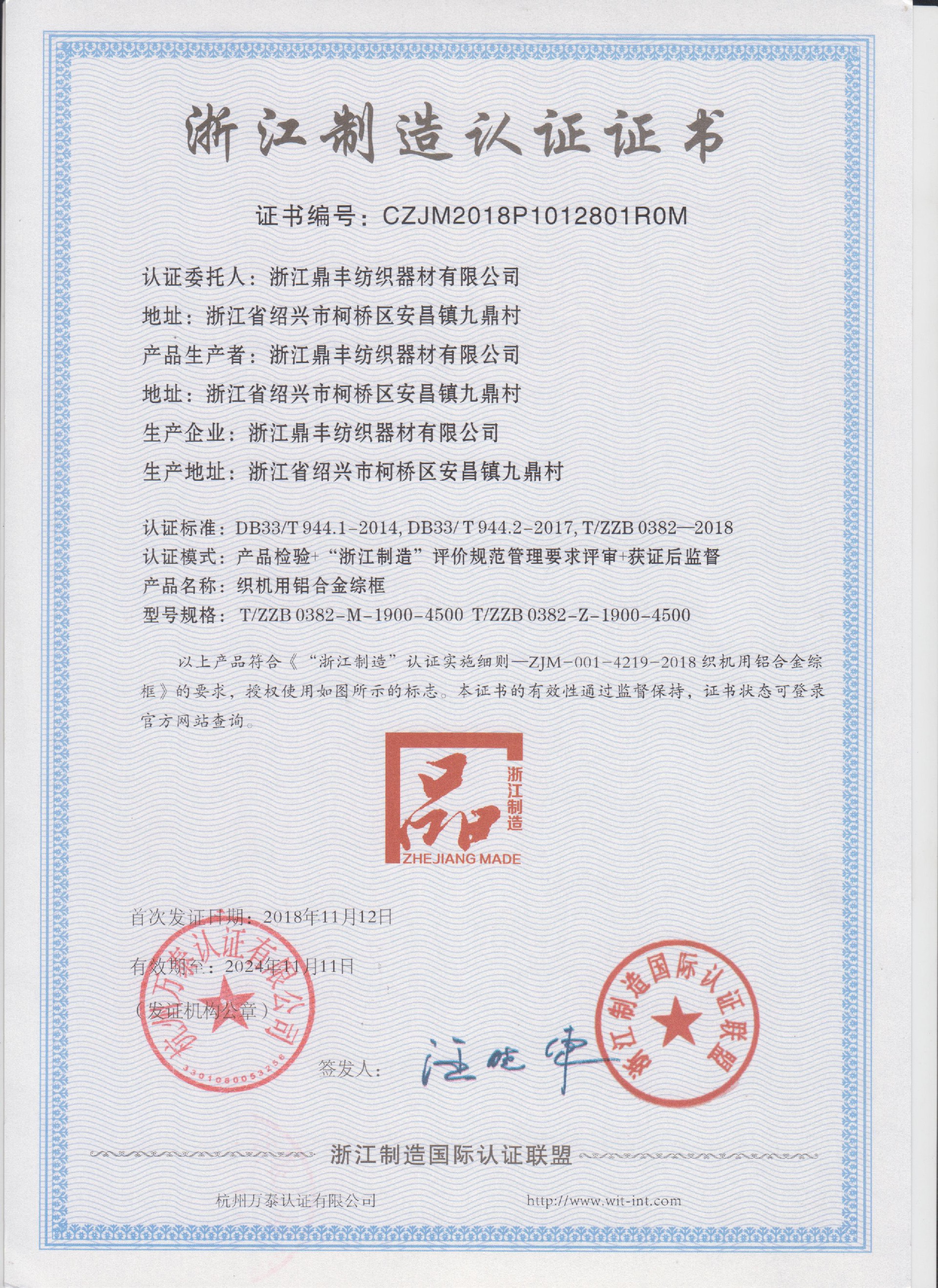 浙江鼎豐紡織器材有限公司始建于1986年,是一家專業(yè)生產(chǎn)各類無梭織機用鋼筘:噴氣筘、噴水筘、劍桿筘、其他類型鋼筘;鋁合金綜框、鋼片綜、停經(jīng)片、經(jīng)軸、織軸、卷布輥等產(chǎn)品及配件的民營企業(yè)。